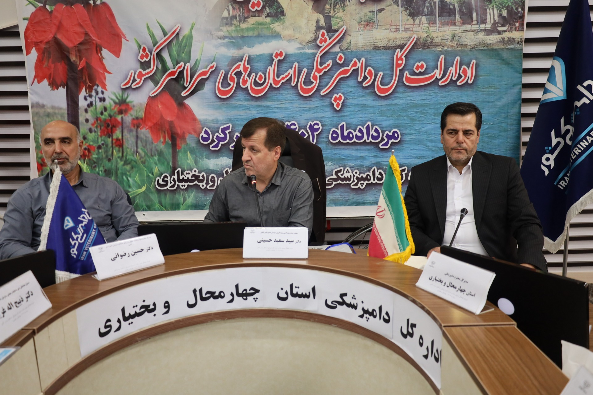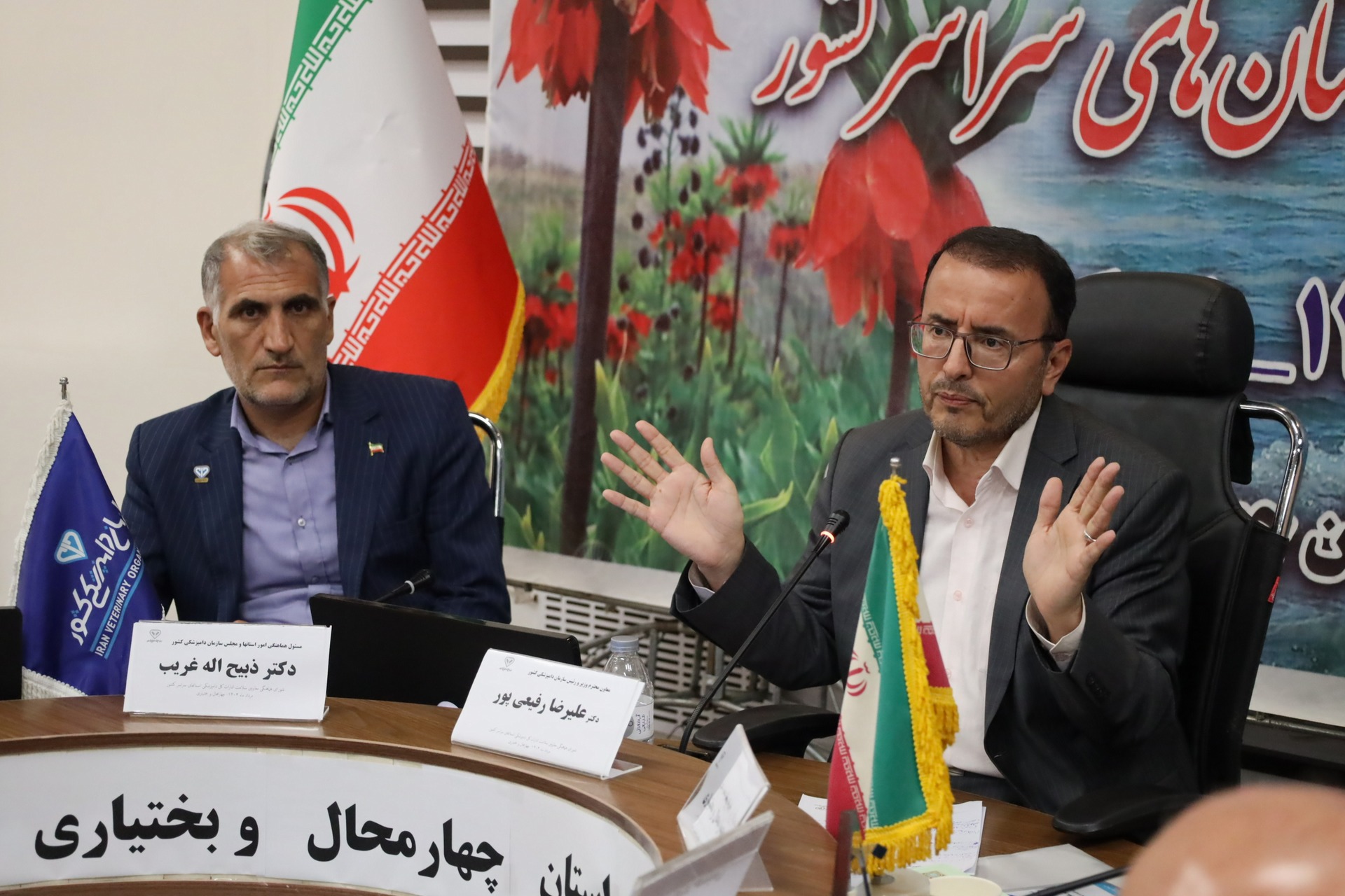 به گزارش روابط عمومی اداره کل دامپزشکی استان: جلسه معاونین سلامت ادارات کل دامپزشکی استان‌های سراسر کشور به میزبانی اداره کل دامپزشکی استان چهارمحال و بختیاری برگزار شد. در این گردهمایی بر نقش حیاتی دامپزشکی در تامین ایمنی غذایی و حفظ سرمایه‌های دامی تاکید شد.به گزارش روابط عمومی اداره کل دامپزشکی استان چهارمحال و بختیاری، جلسه معاونین سلامت ادارات کل دامپزشکی استان‌های سراسر کشور با حضور رئیس سازمان دامپزشکی کشور، نمایندگانی از جهاد کشاورزی، معاونین سازمان دامپزشکی کشور، مدیران کل دفاتر ستادی فنی سازمان، مدیرکل و کارکنان دامپزشکی استان چهارمحال و بختیاری و جمعی از مسئولین استانی در محل این اداره کل برگزار شد.دکتر علیرضا رفیعی پور، رئیس سازمان دامپزشکی کشور، در این جلسه با اشاره به نقش اساسی دامپزشکی در ایمنی غذایی مردم، اظهار داشت: "دامپزشکی نقش مهمی در تامین ایمنی غذا و سفره غذایی مردم و همچنین حفظ سرمایه‌های دامی ایفا می‌کند و وظایف این سازمان در جهت افزایش بهره‌وری در بخش کشاورزی بسیار حائز اهمیت است."وی افزود: "انجام کامل و صحیح وظایف دامپزشکی منجر به کاهش چشمگیر تلفات و ضایعات در دامداری‌ها شده و به تبع آن، افزایش تولید و بهره‌وری در بخش کشاورزی را به دنبال خواهد داشت."در این گردهمایی، حاضران به بحث و تبادل نظر پیرامون مسائل و چالش‌های حوزه سلامت دام و همچنین راهکارهای ارتقای عملکرد و بهره‌وری در این بخش پرداختنداین جلسه با هدف هماهنگی بیشتر بین ادارات کل دامپزشکی استان‌ها و تبادل تجربیات و دانش فنی به‌منظور بهبود عملکرد و ارتقای سطح سلامت دام و بهداشت عمومی در سراسر کشور برگزار شد. مصوبات و نتایج این نشست در آینده‌ای نزدیک از طریق مراجع رسمی اطلاع‌رسانی خواهد شد.